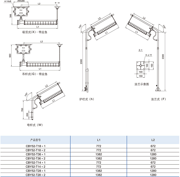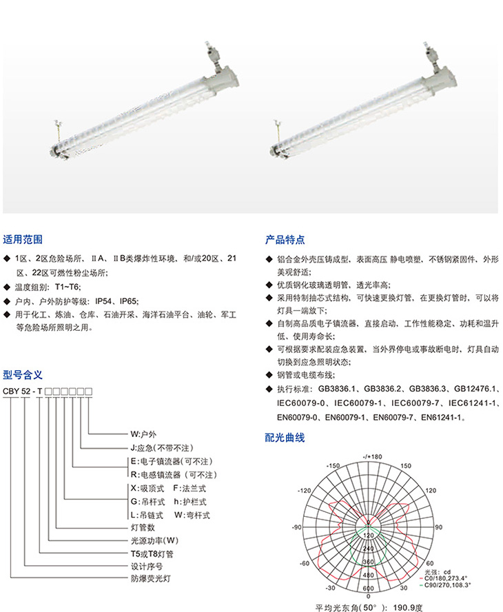 CBY52-T系列防爆荧光灯(T5、T8灯管)(ⅡB、DIP)