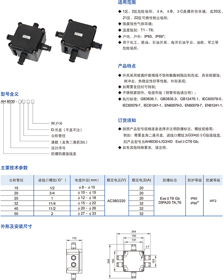 AH8030系列防爆防腐接线盒(eⅡ、DIP)