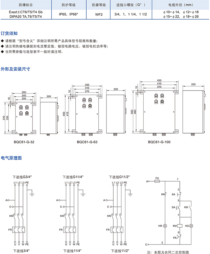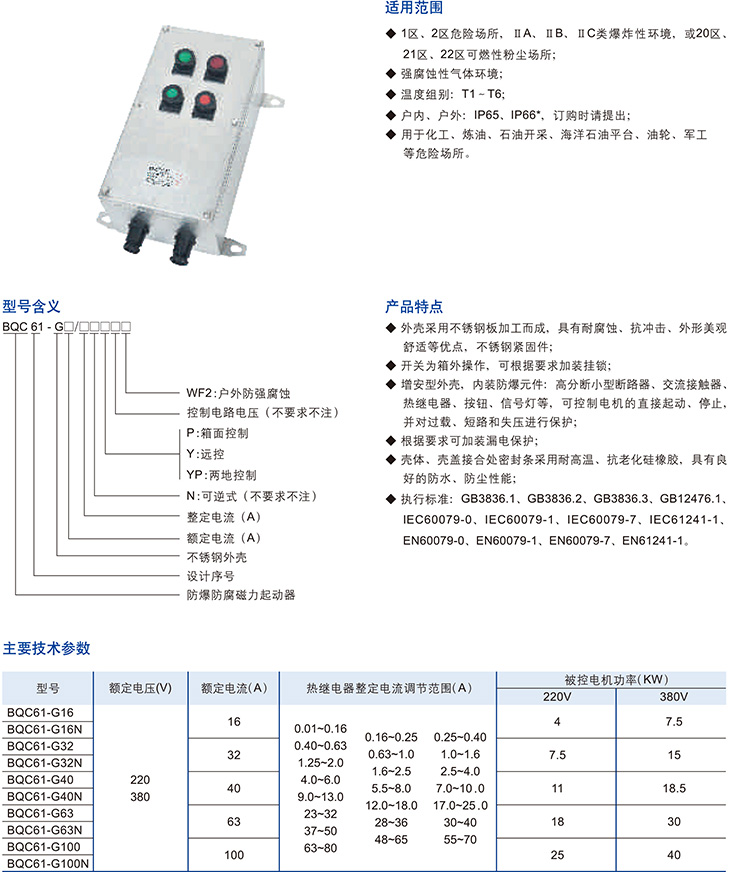 BQC61-G系列防爆防腐磁力起动器(不锈钢)(ⅡB、ⅡC、DIP)