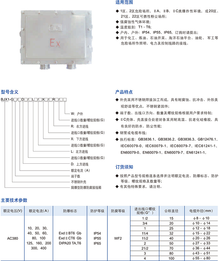 BJX1-G系列隔爆型防爆防腐接线箱(不锈钢)(ⅡB、ⅡC、DIP)