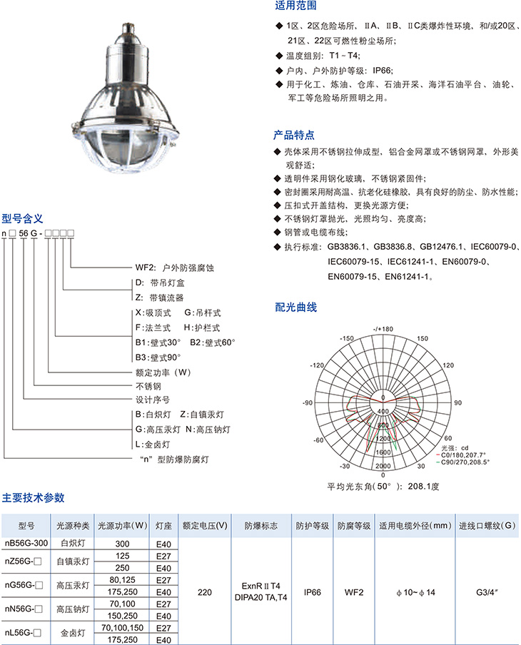 nB56G系列"n"型防爆防腐灯(nR、DIP)