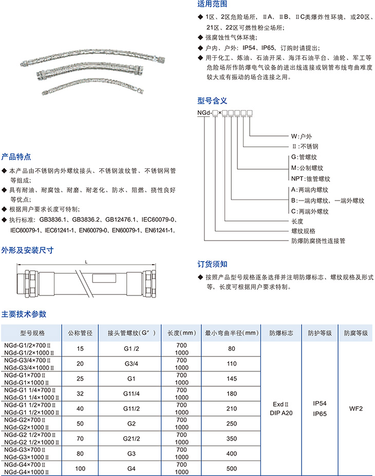 NGd-Ⅱ系列防爆防腐挠性连接管(不锈钢)(dⅡ、DIP)