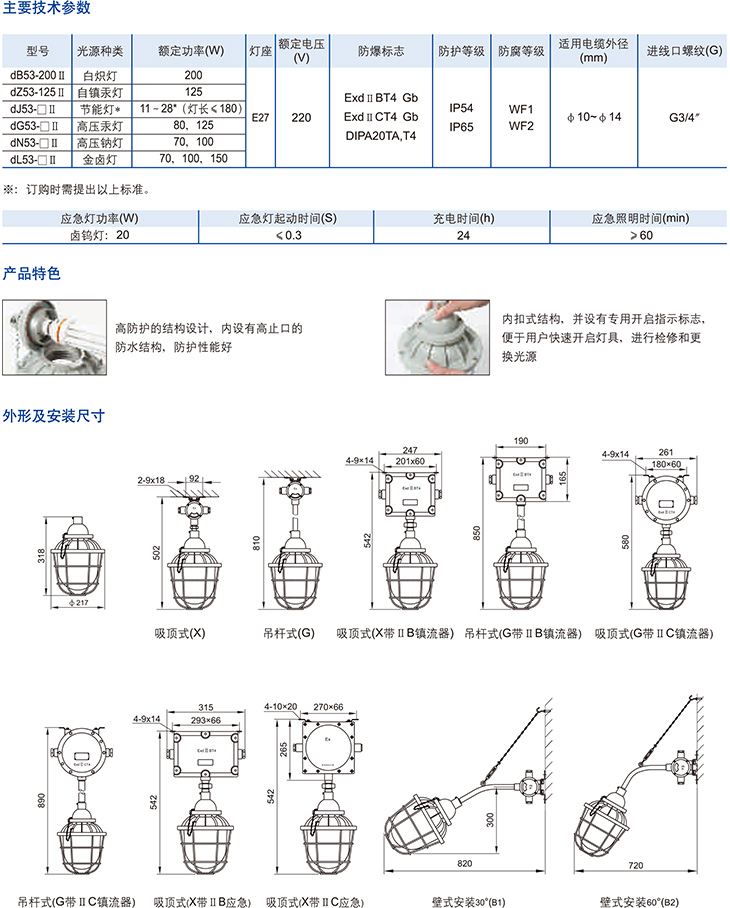 dB53-Ⅱ系列防爆灯(ⅡB、ⅡC、DIP)