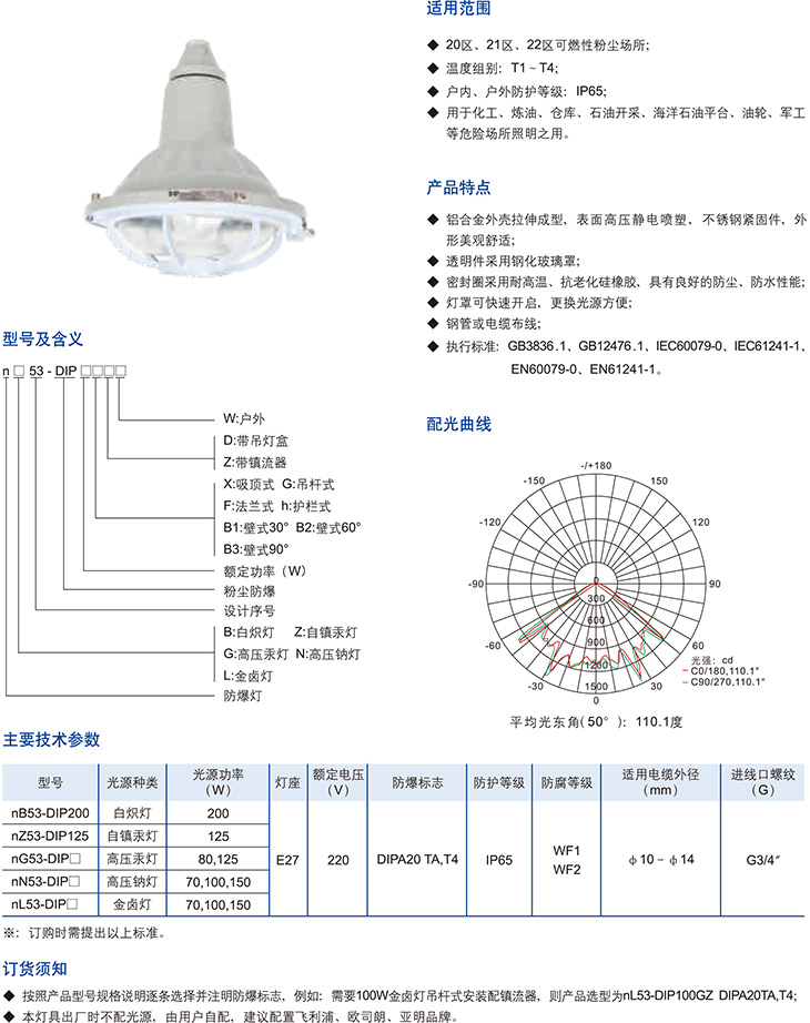 nB53-DIP系列粉尘防爆灯