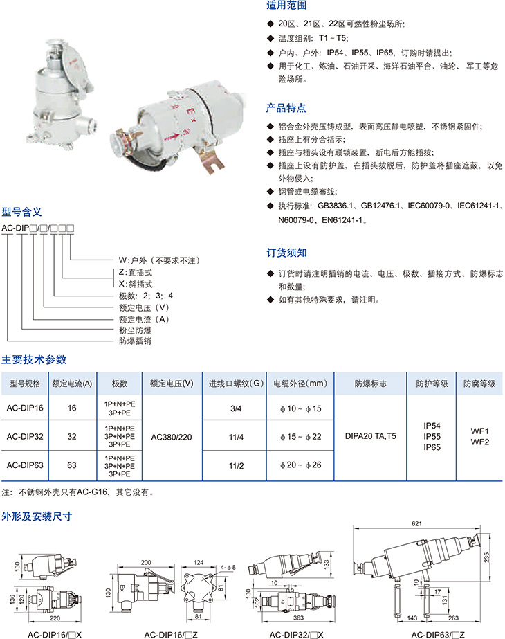 AC-DIP系列粉尘防爆插销