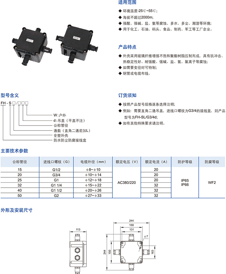 FH-S系列防水防尘防腐接线盒