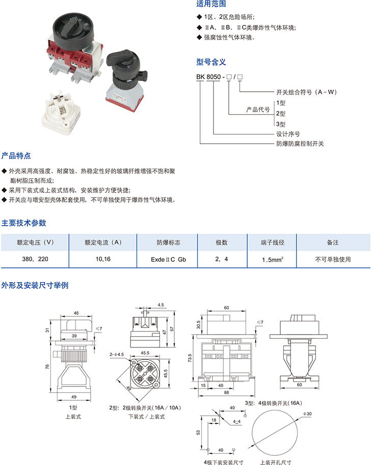BK8050系列防爆防腐控制开关(ⅡC)