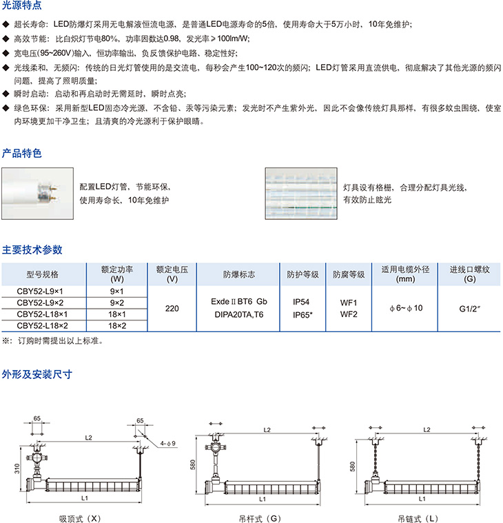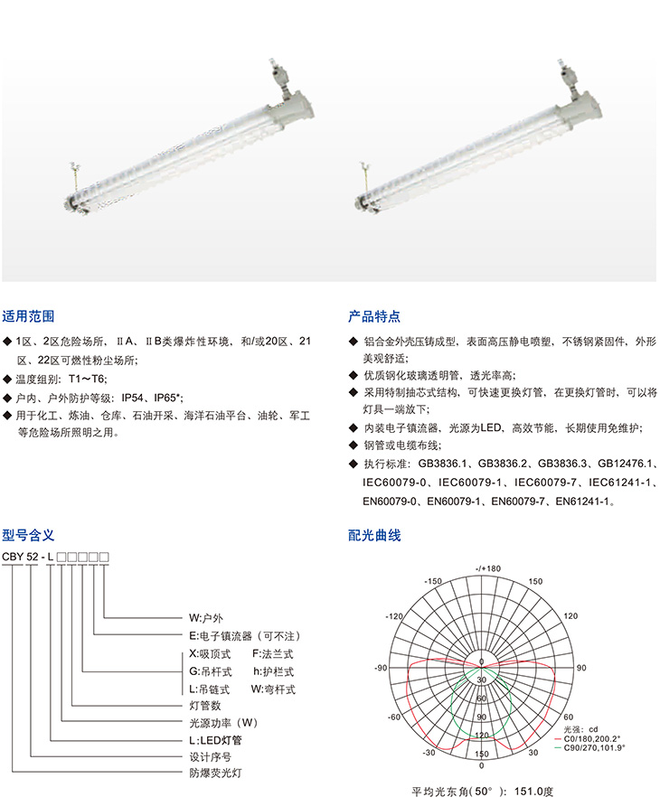CBY52-L系列防爆荧光灯(LED灯管)(ⅡB、DIP)