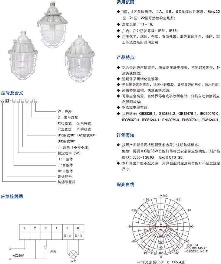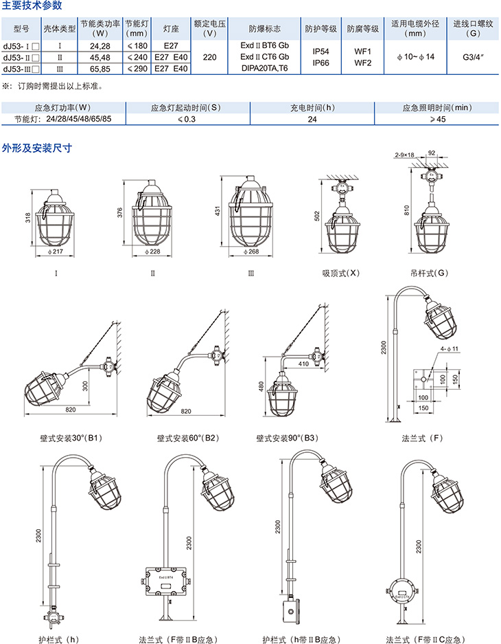 dJ53系列防爆节能灯(ⅡB、ⅡC、DIP)(应急)