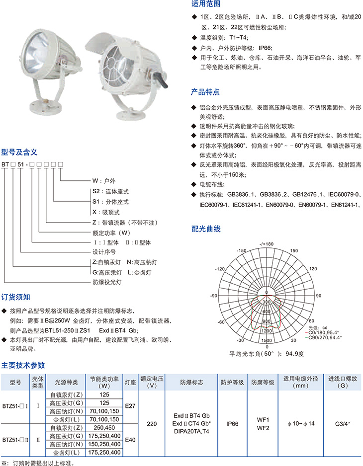 BTZ51系列防爆投光灯(ⅡB、ⅡC、DIP)
