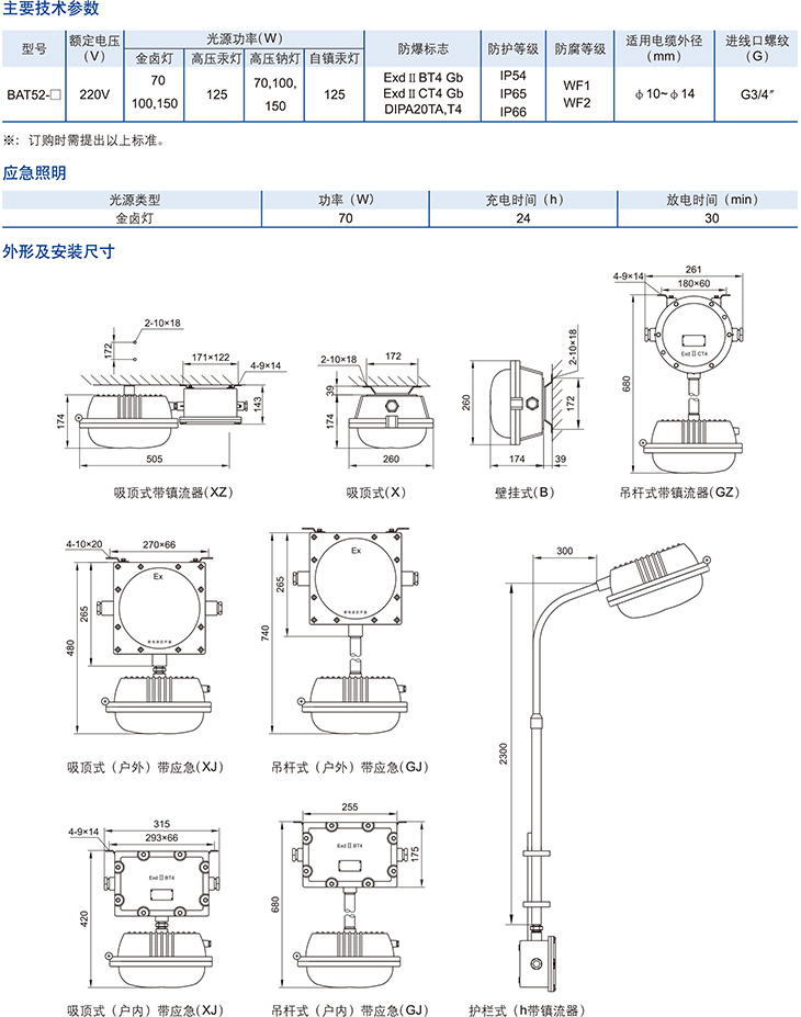 BAT52系列防爆强光泛光灯(ⅡB、ⅡC、DIP)