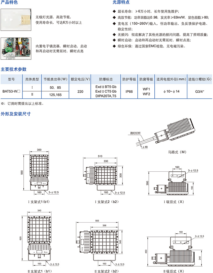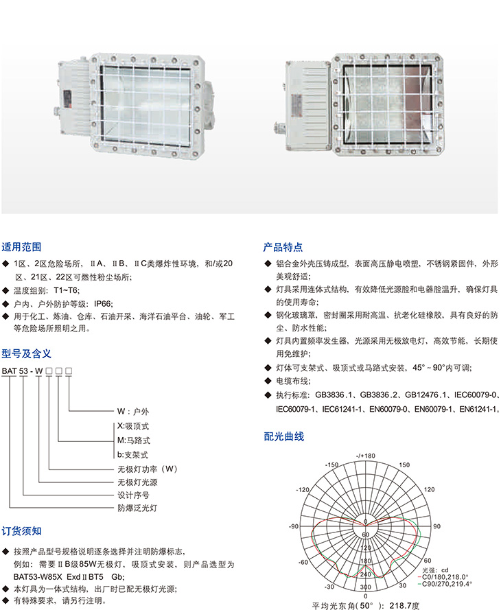 BAT53-W系列防爆泛光无极灯(ⅡB、ⅡC、DIP)
