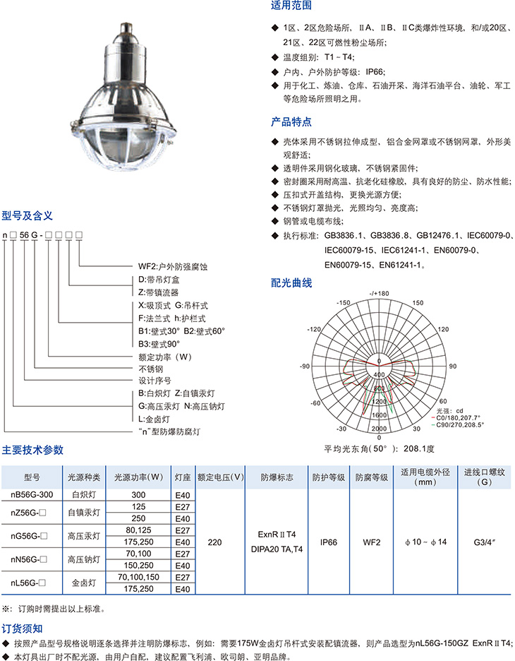 nB56G系列"n"型防爆防腐灯(不锈钢)(nR、DIP)