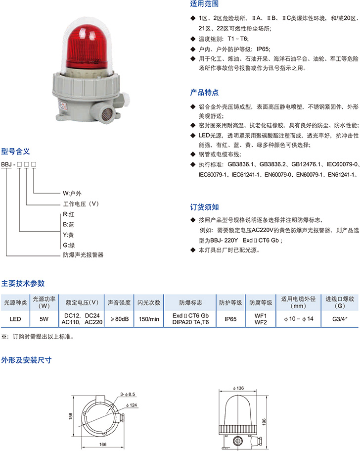 BBJ系列防爆声光报警器(LED)(ⅡB、ⅡC、DIP)