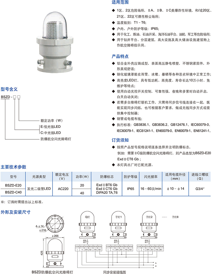 BSZD系列防爆航空闪光障碍灯(LED)(ⅡB、ⅡC、DIP)