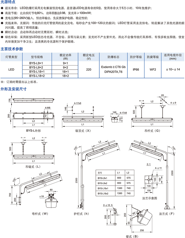 BYS-L系列防爆防腐荧光灯(LED灯管)(ⅡC、DIP)