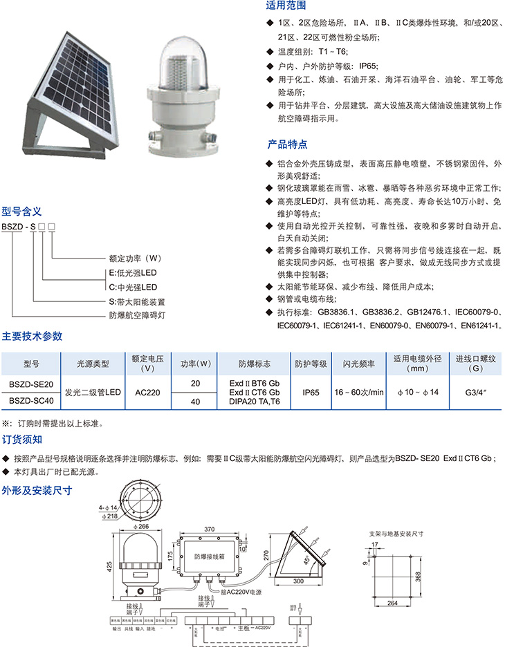 BSZD-S系列防爆太阳能航空障碍灯(LED)(ⅡB、ⅡC、DIP)