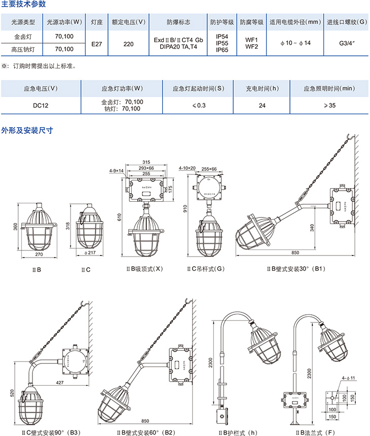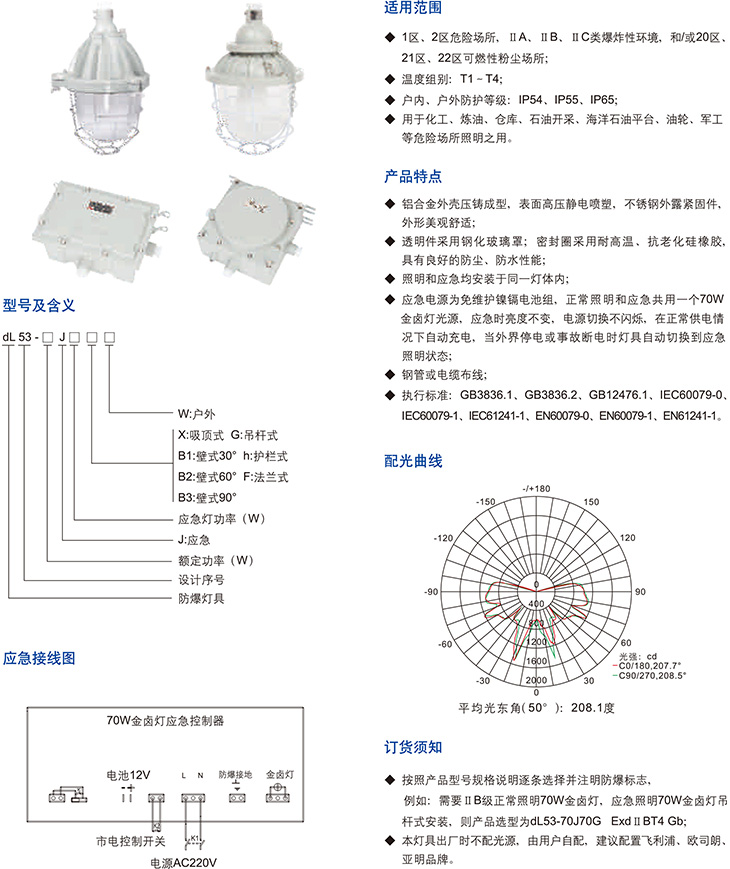 dL53-70J70/100J100系列防爆应急照明两用灯(ⅡB、ⅡC、DIP)