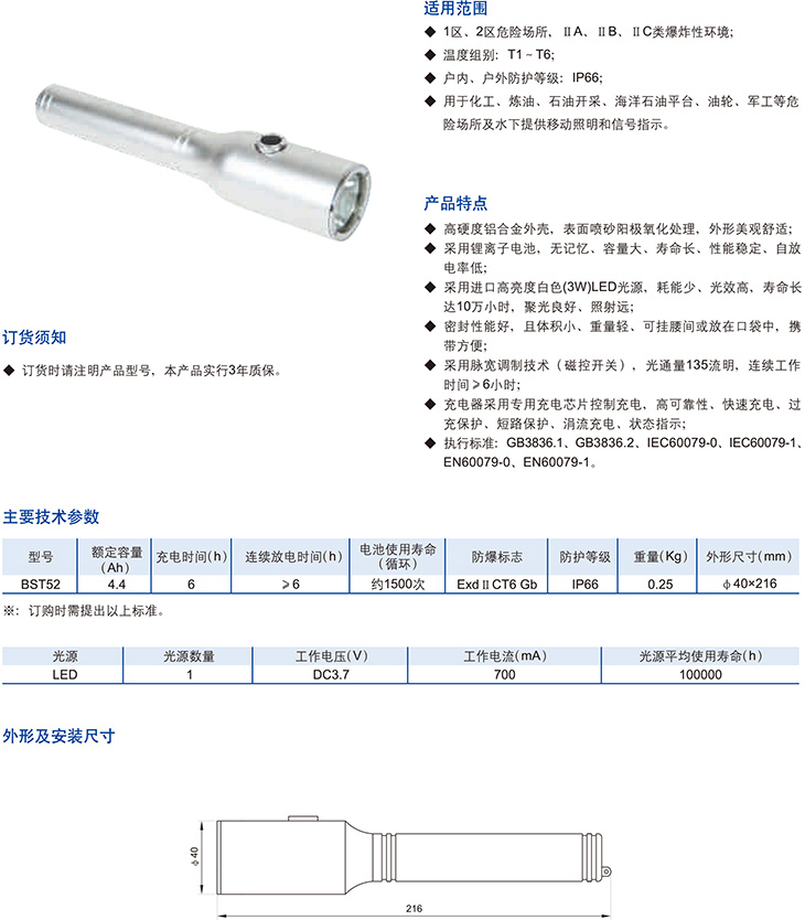 BST52系列防爆手电筒(LED灯)(ⅡC)