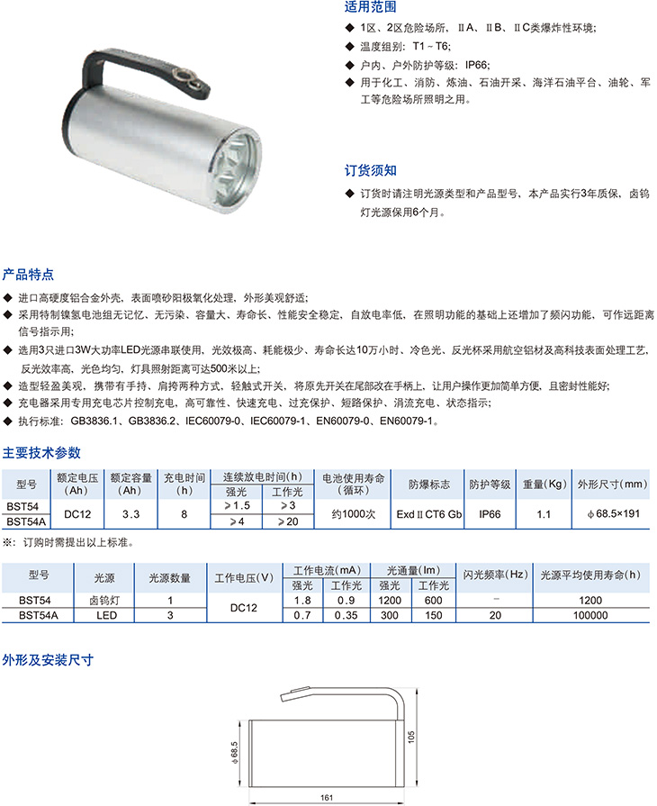 BST54系列手提式防爆探照灯(卤钨、LED灯)(ⅡC)