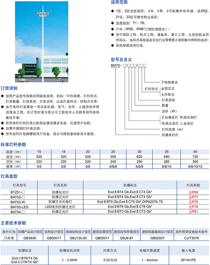 BMTD系列防爆高杆灯(ⅡB、ⅡC、DIP)