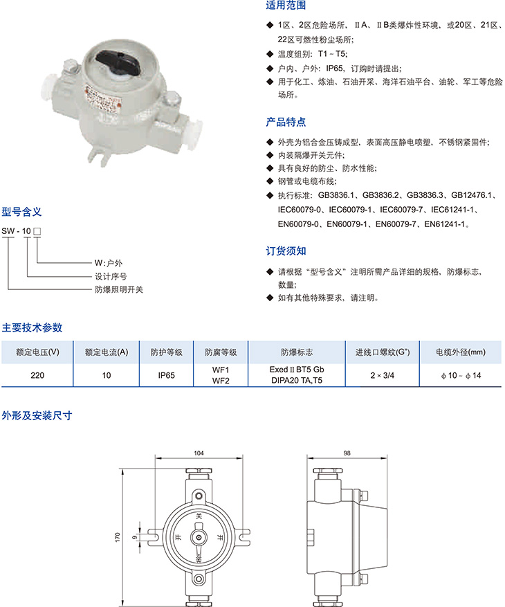 SW-10系列防爆照明开关(ⅡB、DIP)