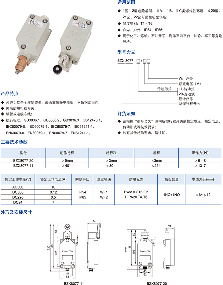 BZX8077系列防爆行程开关(ⅡC、DIP)