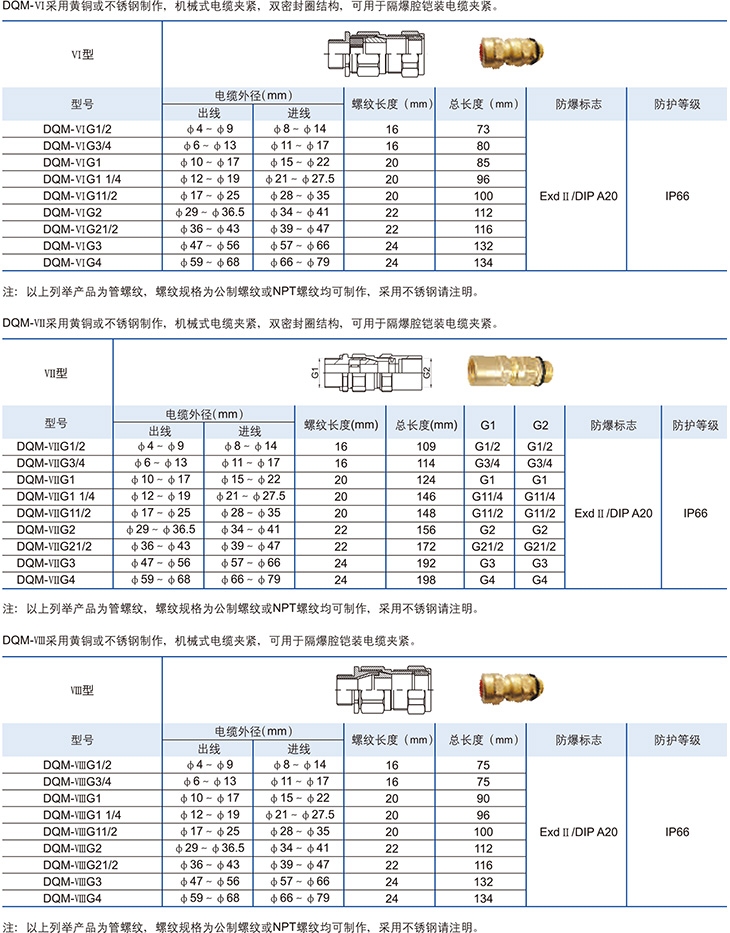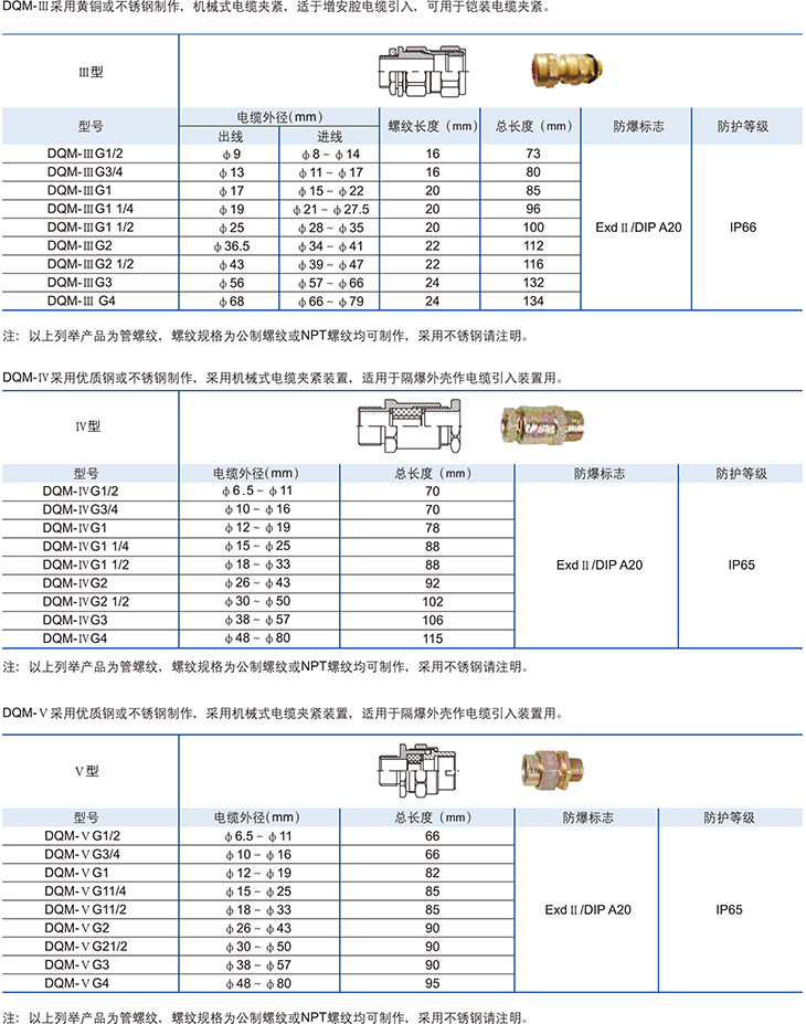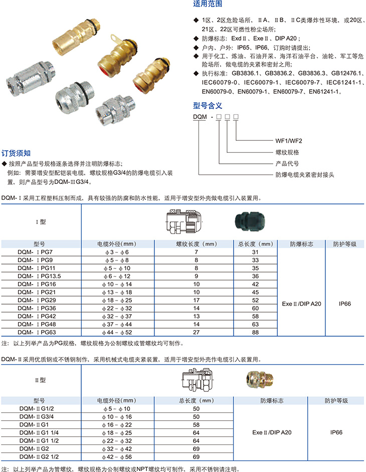 DQM系列防爆电缆夹紧密封接头(dⅡ、DIP)