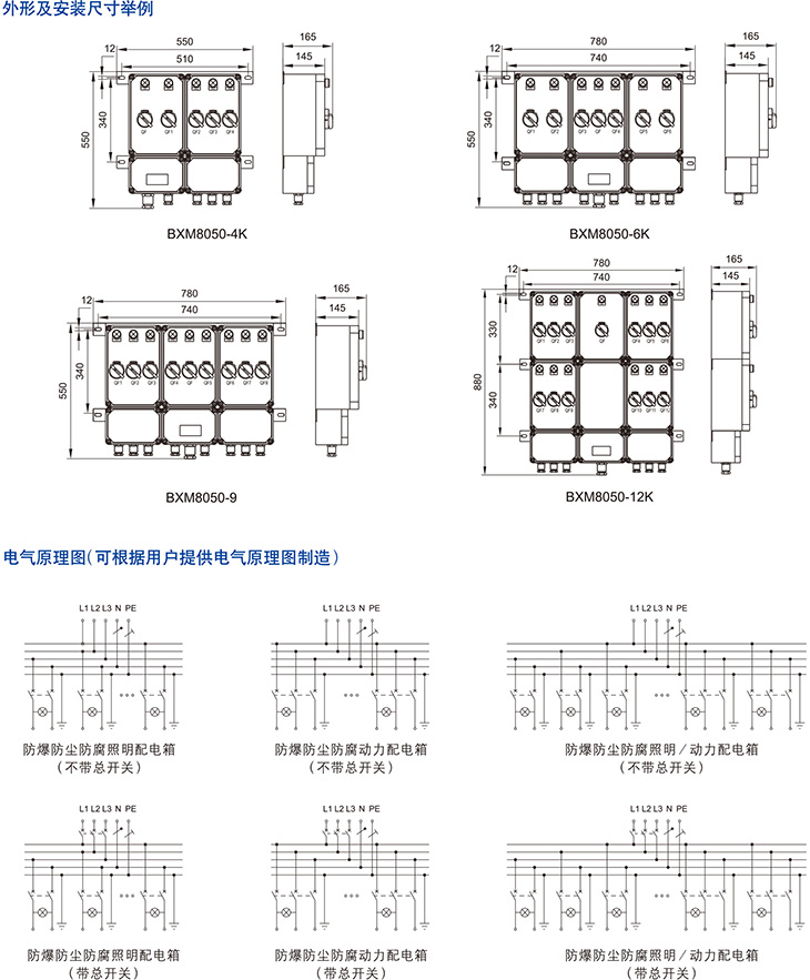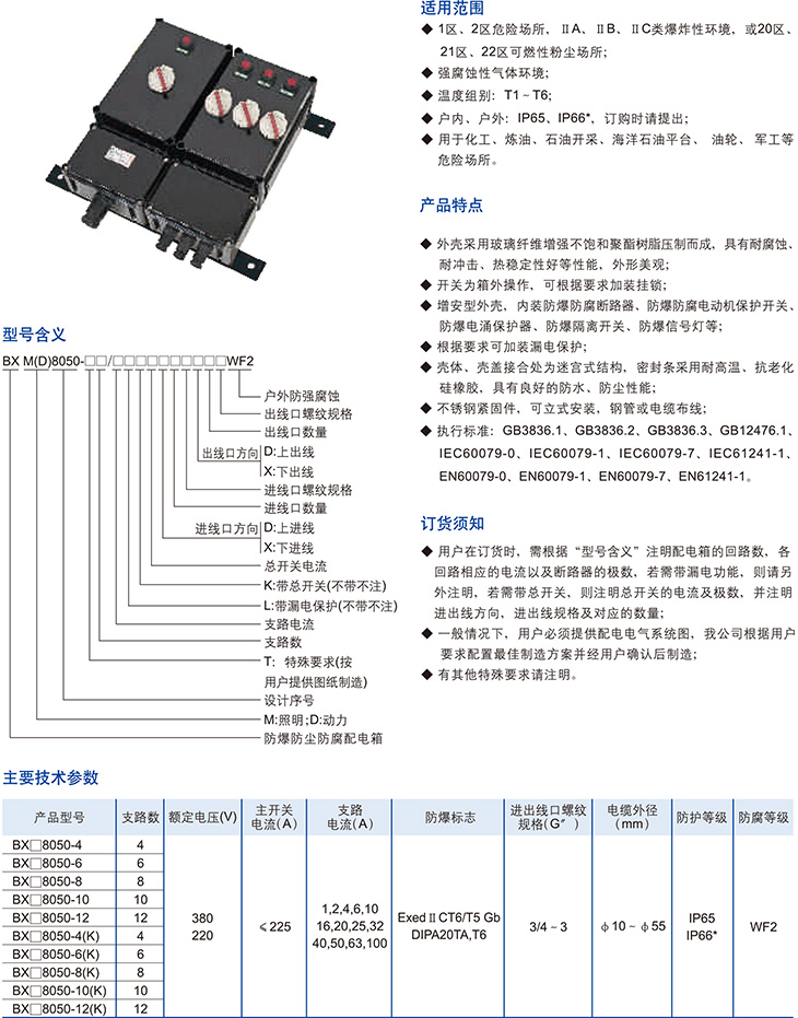 BXM(D)8050系列防爆防尘防腐照明(动力)配电箱(ⅡC、DIP)