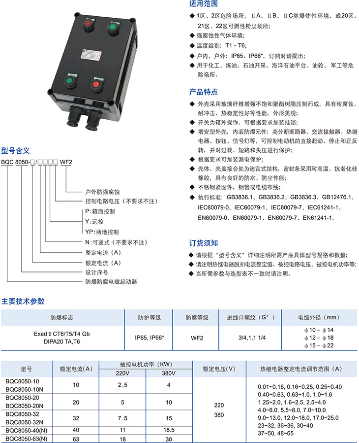BQC8050系列防爆防腐电磁起动器(ⅡC、DIP)